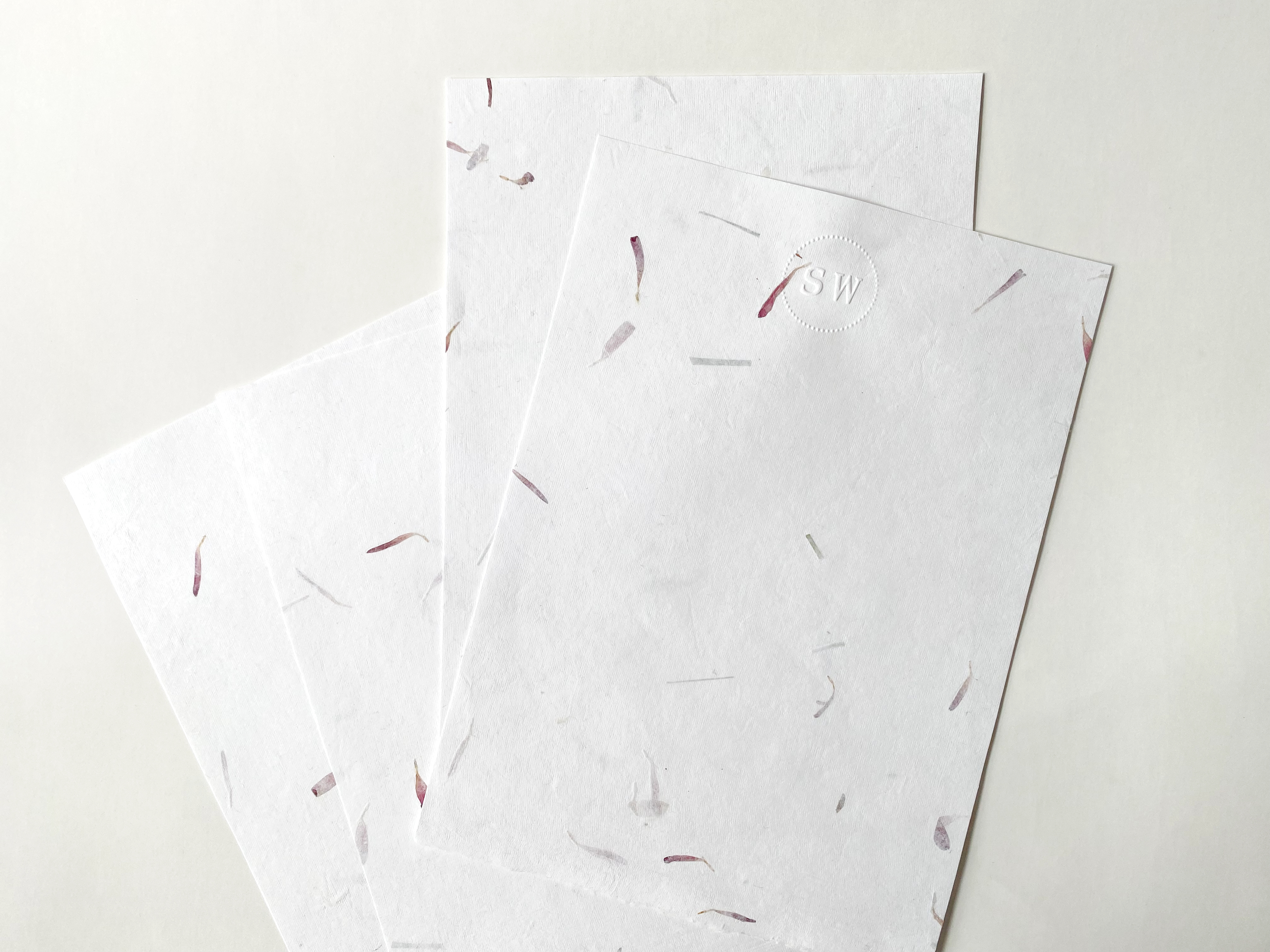 Dieses besondere Papier mit echten Asternblüten hat seinen Ursprung in Indien und wird dort umweltfreundlich aus Baumwollfasern gewonnen, die als Reststoffe in der Textilindustrie anfallen. Durch die Verwertung dieser hochwertigen Fasern entsteht ein Material, das besonders langlebig und wertig ist. Ob für handgeschriebene Liebesbriefe, Einladungen zur Hochzeit oder als exklusives Geschenk – der einseitige, echte Büttenrand unterstreicht den authentischen Charakter dieses besonderen, asiatischen Papiers.
