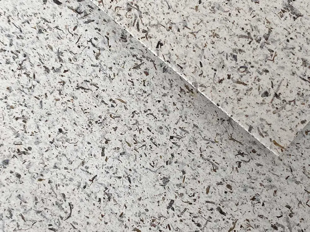 Die Textur des 280g-Papiers und die natürlichen Farbtöne der Algen machen jedes Projekt mit diesem Papier zu einem Highlight. Es ist frei von synthetischen Zusätzen, recyclebar und biologisch abbaubar. Das Papier besteht ausschließlich aus natürlichen Materialien bietet eine besondere visuelle Ästhetik. Es eignet sich für verschiedene Papierprojekte und ist einfach in der Verarbeitung. Hier kannst Du mehr über unsere Materialien erfahren.