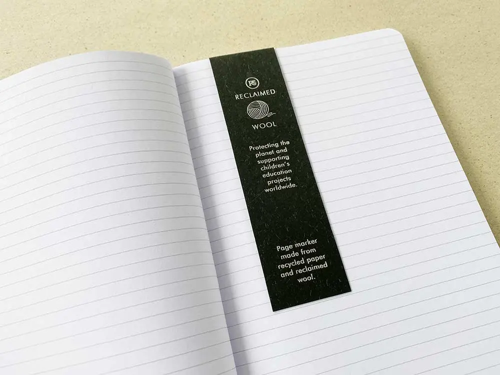 Wir sind leidenschaftlich darum bemüht, Materialien wiederverzuwenden und zu recyceln, um Abfall zu reduzieren und Ressourcen zu schonen. Unsere Produkte sind nicht nur ästhetisch ansprechend, sondern auch umweltfreundlich, wie zum Beispiel dieses Notizbuch aus recycelter Wolle. Wir setzen uns für eine bessere Zukunft ein und Du kannst auch einen Beitrag leisten, indem du ein Notizbuch kaufst und damit Bildungsprojekte für Kinder weltweit unterstützt.