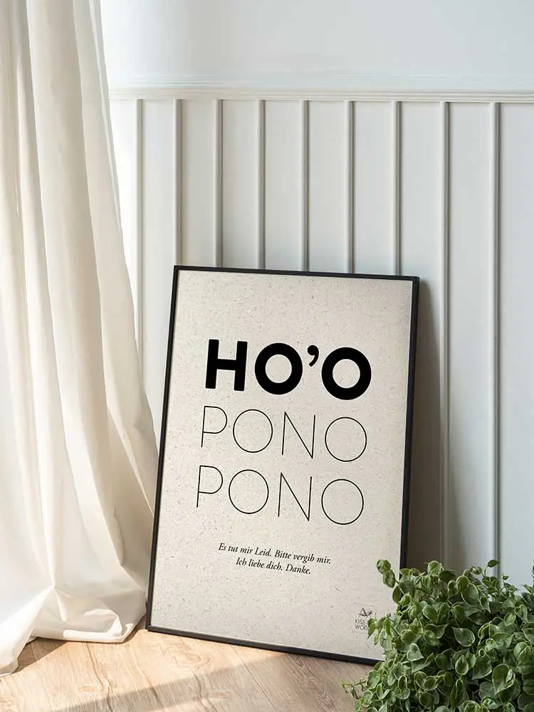 Mit dem „Ho’oponopono“ Graspapier-Poster schmückst Du nicht nur Deine Wände mit inspirierenden Affirmationen, sondern bereicherst auch Dein Zuhause mit einem klaren Statement.