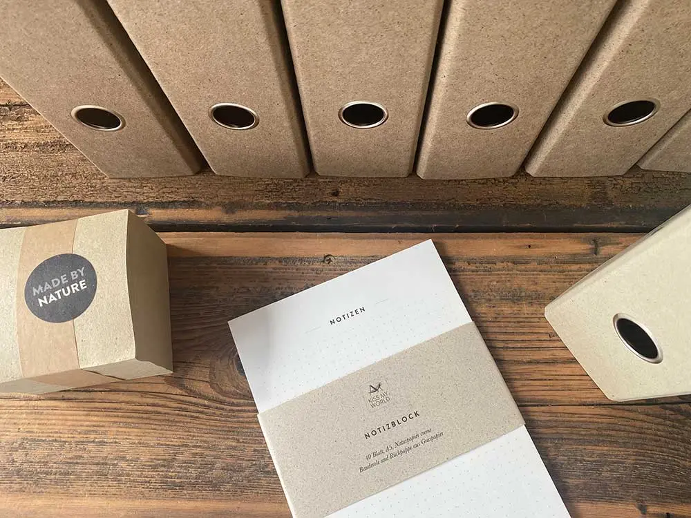 Mit unserem neuen Aktenordner aus Silphiepapier hast Du die Möglichkeit, all Deine wichtigen Dokumente an einem Ort zu verstauen und gleichzeitig ein Zeichen für Nachhaltigkeit zu setzen. Durch die eingebaute Hebelmechanik aus Metall kommt dieser Ordner komplett ohne Plastik aus. Schau gerne hier auf unserer Infoseite zu den unterschiedlichen Materialien vorbei und erfahre mehr über nachhaltige Papiere.